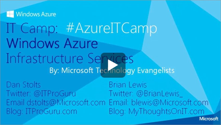 Learn how to use Windows Azure to extend an on-premises network and embrace the power and scale of the cloud. Put your feet up and get hands-on with Windows Azure Storage, Virtual Machines and Virtual Networking for key IT Pro scenarios.